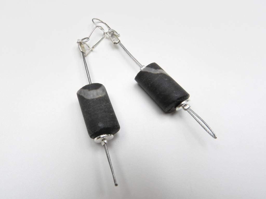Boucles d'oreilles en pierre taillée noire veinée de quartz