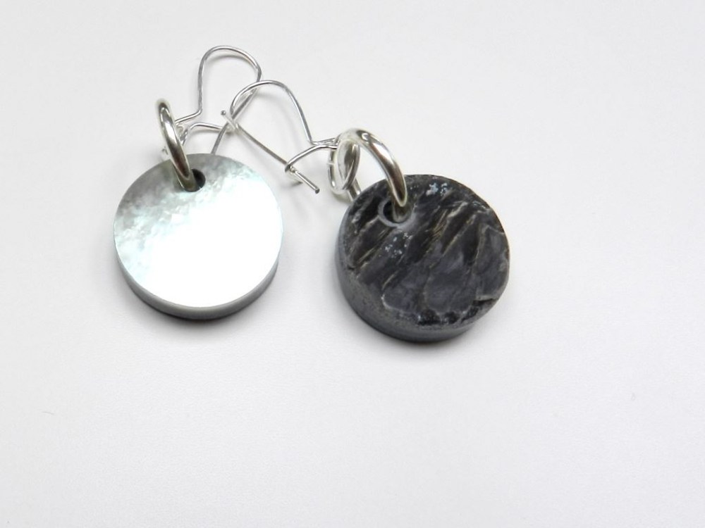 Boucles d'oreilles en nacre des îles et anneaux en argent