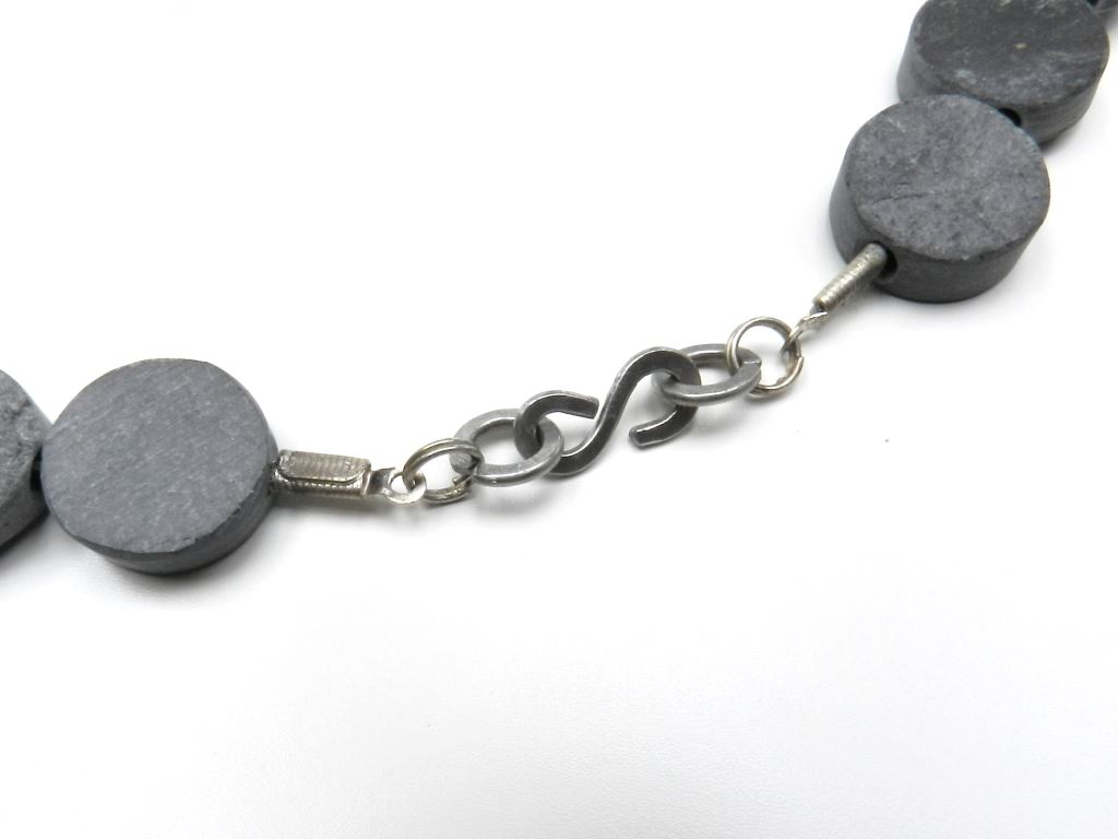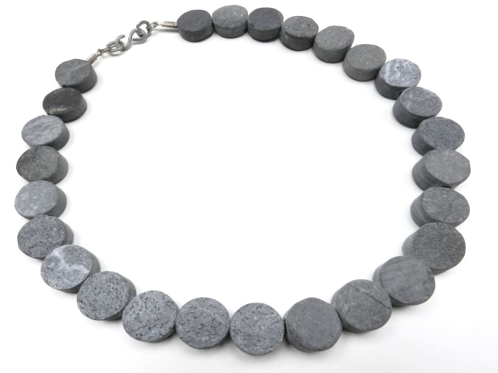 Collier composé de perles en ardoise,forées ,percées et assemblées