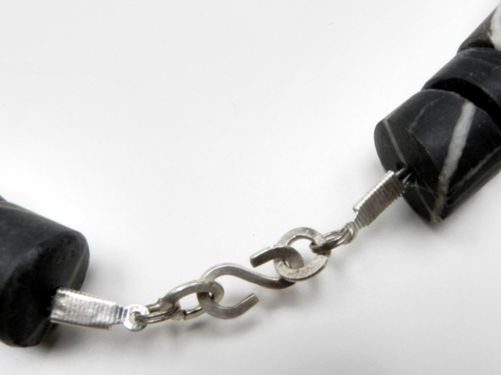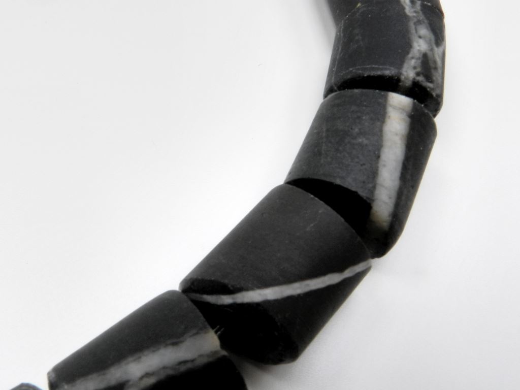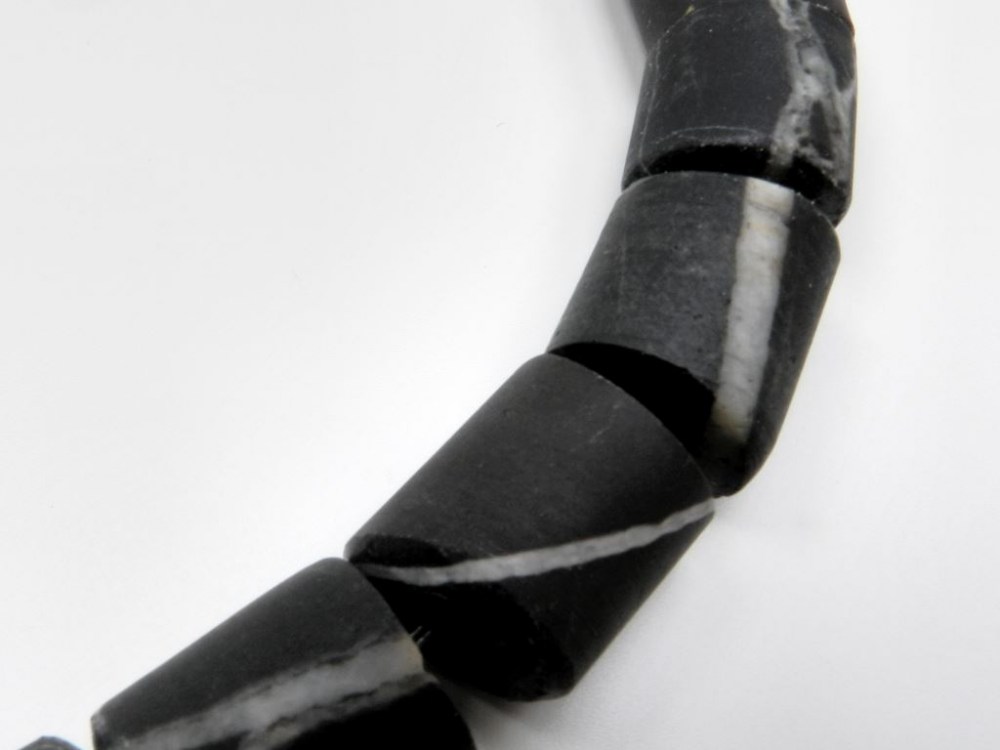 Collier composé de perles de pierre de grès noir veiné de quartz blanc