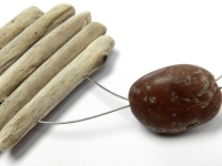 Collier composé de petits bois flottés alignés et de 4 galets dans différents tons de bruns
