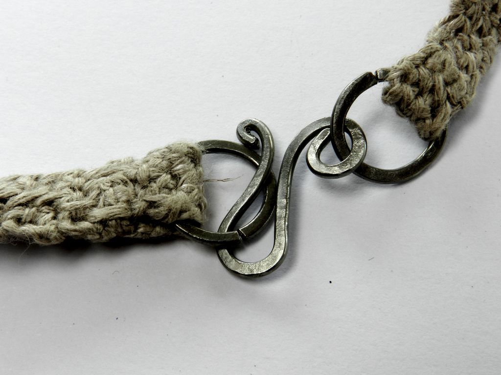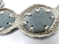 Collier composé de 5 galets d'ardoise crochetés avec un fil de lin dans les tons gris souris